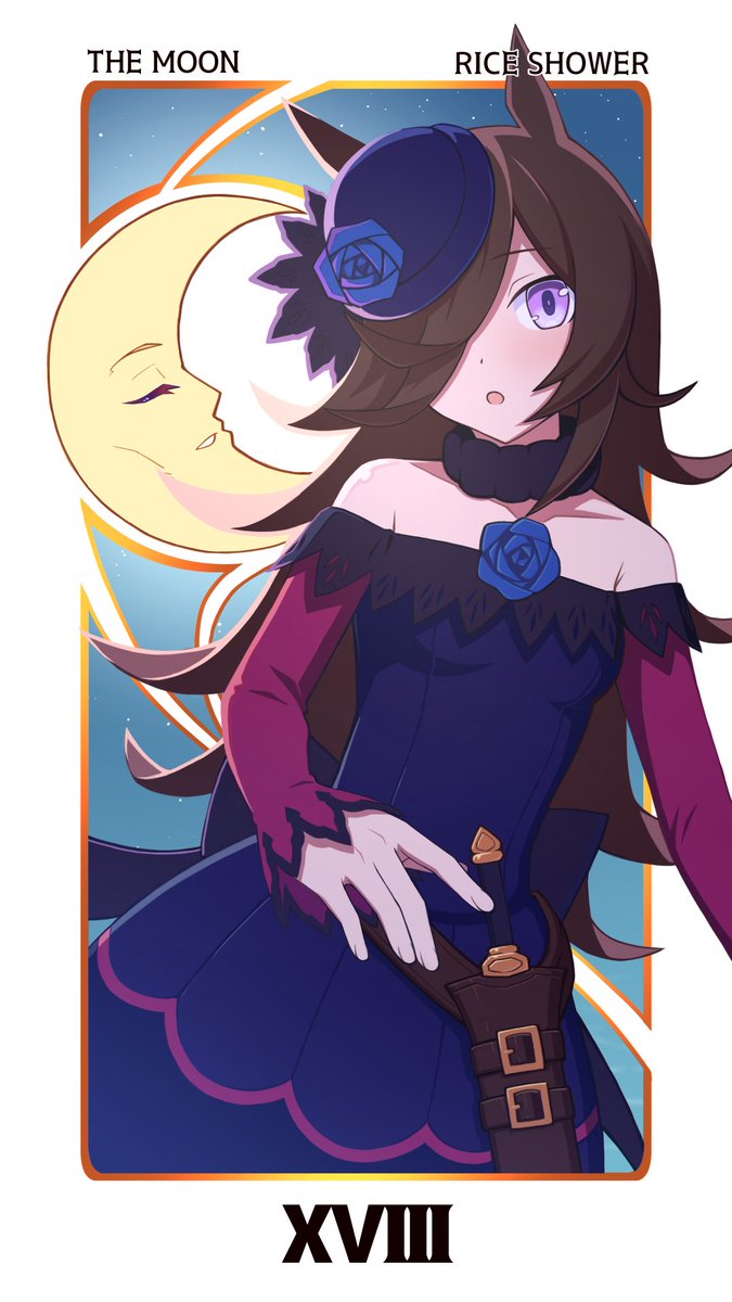 折り返しのタロットシリーズ第11弾 18.月 ライスシャワー | ひふみつかさ #ウマ娘 #ウマ娘プリティーダービー #ライスシャワー #タロット #pixiv pixiv.net/artworks/96874…