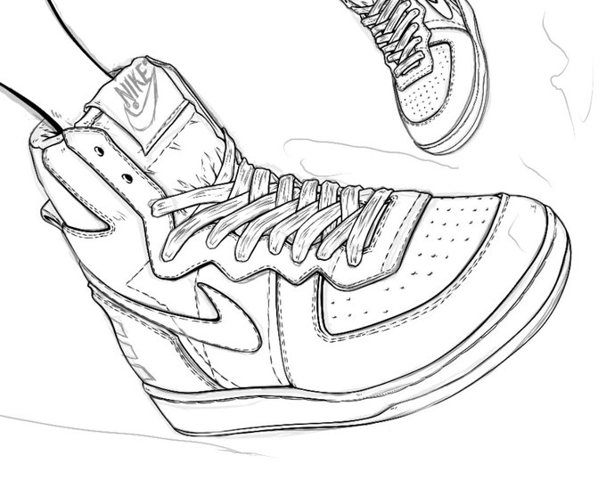 あんよチャン!スニーカーイラスト 制作中! 10/1に海外発売だったターミネーター復刻! 国内での発売に合わせて投稿しようと思ったけど、いつなんだろ…(  ̄▽ ̄)? #ターミネーター #ジョージタウン #スニーカーイラスト #あんよチャン #nike #terminator #georgetown #線画