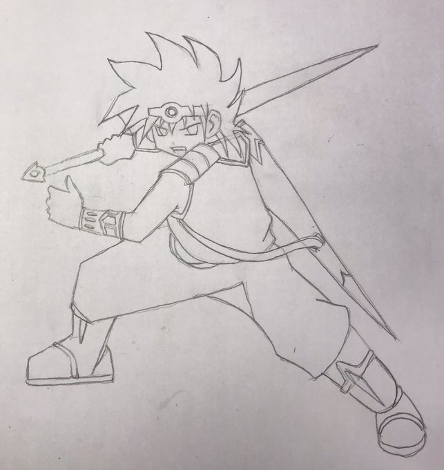 ダイの大冒険のダイを描きました‼️ とりあえずアバンストラッシュ‼️‼️ 目だけオリジナルで描いた‼️ #ダイの大冒険 #ダイ #アバンストラッシュ #落書き好きさんと繋がりたい #模写イラスト