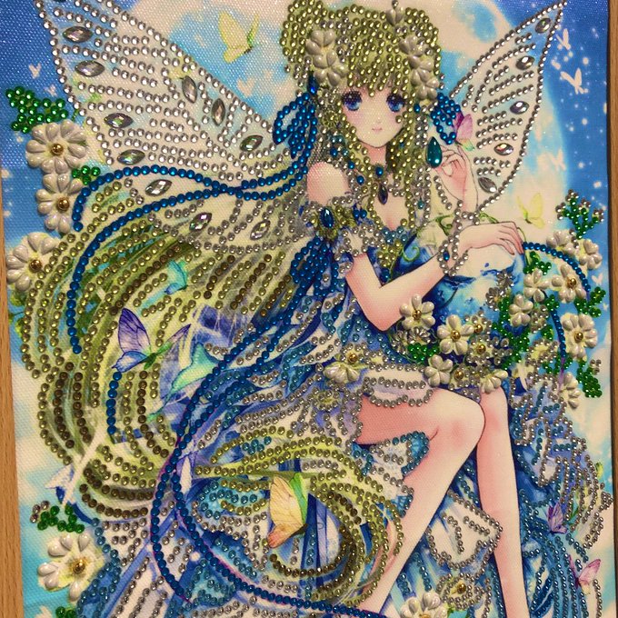 問題です。この子の羽根は天使のものでしょうか?それとも妖精の羽根でしょうか? #ダイアモンドアート #ハンドメイド好きな人と繋がりたい #イラスト #天使 #妖精 #花 #月 #宝石 #art #artwork #illustration #handmade #Flowers #moon #みんなで楽しむTwitter展覧会 #美術ネットワーク #芸術の輪