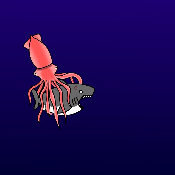 たぶん神殺しや竜殺しよりも人殺しの方が目の前にいたら百倍恐い 今日の絵は前に描いたウミボザ君のダイオウイカカラーver.です。 可愛すぎるわぁ〜 #イラスト好きと繋がりたい #絵描きさんと繋がりたい #オリキャラ #イカ #クジラ #ダイオウイカ