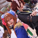【Cosplay】 ウオッカ「オマエなんかに」 ダスカ「アンタなんかに」 「負けないだから‼️」 •┈┈••✦☪︎✦••┈┈• ・ウオッカ/@sora1102cos ・ダスカ/@YukiSakura210 #コスフェス名古屋 #コミライ名古屋 #ウマ娘になってしまいました #ウオッカコスプレ #ダイワスカーレットコスプレ