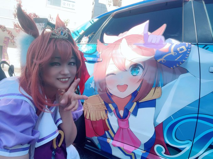 【Cosplay】 ─ ツーショ💕 ─ •┈••✦☪︎✦••┈• ダイワスカーレット/ ウマ娘 Photo by 自撮り テイオーちゃんの痛車さんとツーショ撮らせていただきました😆💕 #これぱ #ハツラツ市 #ウマ娘コスプレ #ウマ娘になってしまいました #ダイワスカーレットコスプレ