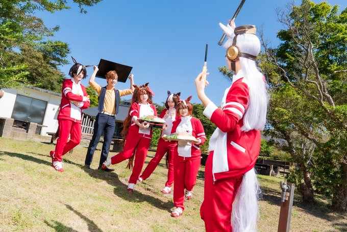 cosplay/コスプレ ウマ娘プリティーダービー チームスピカ💫 4枚目は1日中ホテルで合宿飯を作り続けてくれた料理長に感謝するチームスピカ一同🍳 📸ミナケン@midouken1 ※ロケ地許可済 #スピカ併せうまぴょいステークス #スピカ箱根合宿 #ダカコス