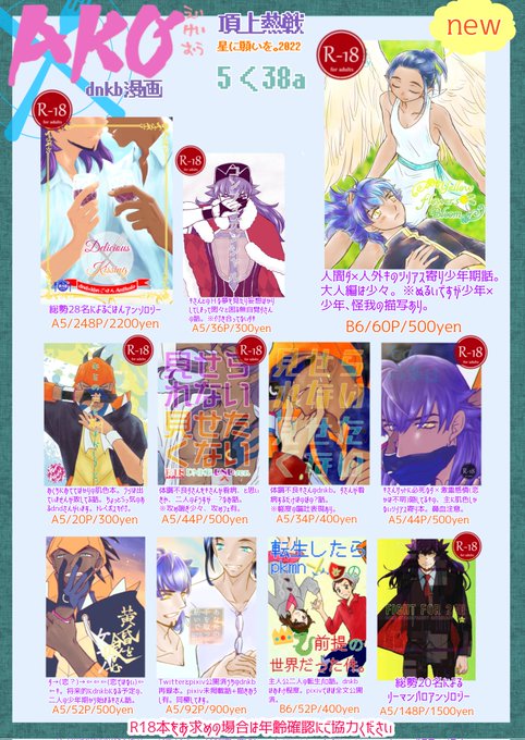 【7/23頂上熱戦お品書き】AKO dnkb漫画 東5く38a AKO お品書き 全サンプルは支部にすべてリンクあり フォロワさんに限らず、すべての本お取り置き承りますのでリプかDMくださいませ! 売り子さんはおりますが開始からしばらくはMIN本人不在です🙇♂️ #ダキオフ告知 pixiv.net/artworks/99877…