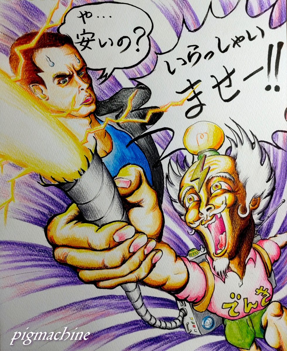 描けました‼️☺️✨ 思いつきシリーズ・ハリウッド名画編 「ボーン・アイデンティティ」より 「ボーン・売電ジジイ」 #イラスト #イラスト好きな人と繋がりたい #絵描きさんと繫がりたい #みんなで楽しむTwitter展覧会 #artwork #ダジャレ #ボーン・アイデンティティ