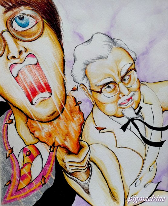 描けました🥰‼️ 思いつきシリーズ・ハリウッド名画編 「ハリー・ポッターと賢者の石」より 「ハリー・ポッターとケンタの意地」 #イラスト #イラスト好きな人と繋がりたい #みんなで楽しむTwitter展覧会 #アトリエの系譜S #絵描き #ダジャレ #ハリー・ポッター