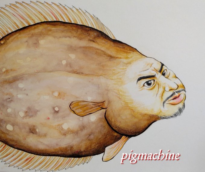 描けました😊‼️✨ 思いつきシリーズ・名作料理編 「カツカレー」より 「勝カレイ」 #イラスト #みんなで楽しむTwitter展覧会 #アトリエの系譜 #art #絵描きさんと繋がりたい #ダジャレ #勝新太郎