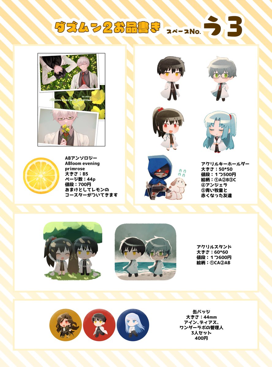 #ダズムン2お品書き 相変わらずアンジェラだらけのサークルですが明日よろしくお願いします~!すべてBOOTHからの販売となります 新刊(本)については12月中旬発送を予定しておりまして、他グッズを先に発送してほしい場合はお手数ですが別々でご注文いただければと思います!🙇♀️