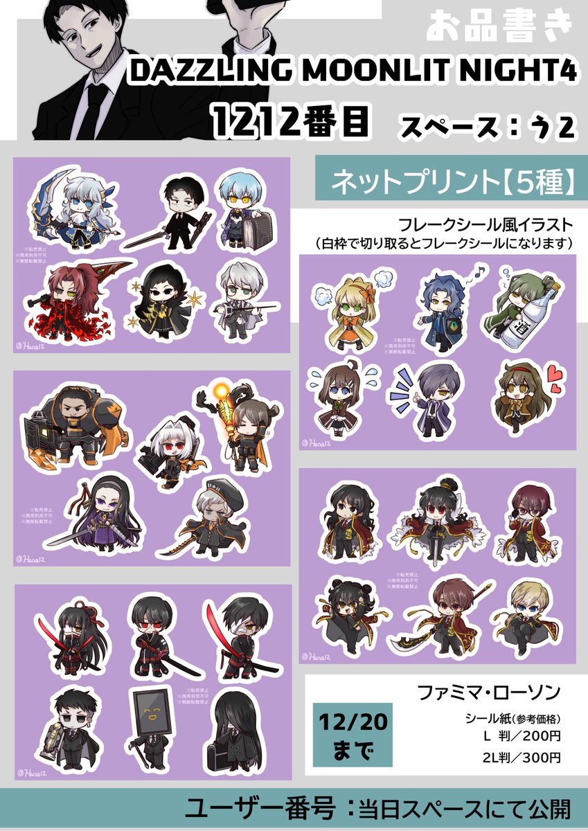 #ダズムン4お品書き 11月27日開催 DAZZLING MOONLIT NIGHT4のお品書きです スペース【さ1】にてお待ちしております!✨ 数は未定ですが色紙や原画も頒布予定です!