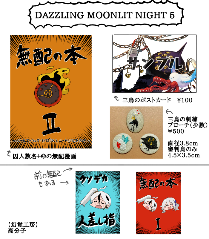 【告知】 5/28 DAZZLING MOONLIT NIGHT5に サークル「ヤマタイキングダム」で参加します!! う1で僕と握手!!!!!! (サンプルがダズムン当日まで届かないと思うので、グッズの詳細はリプ欄に載せておきます) #ダズムン5お品書き