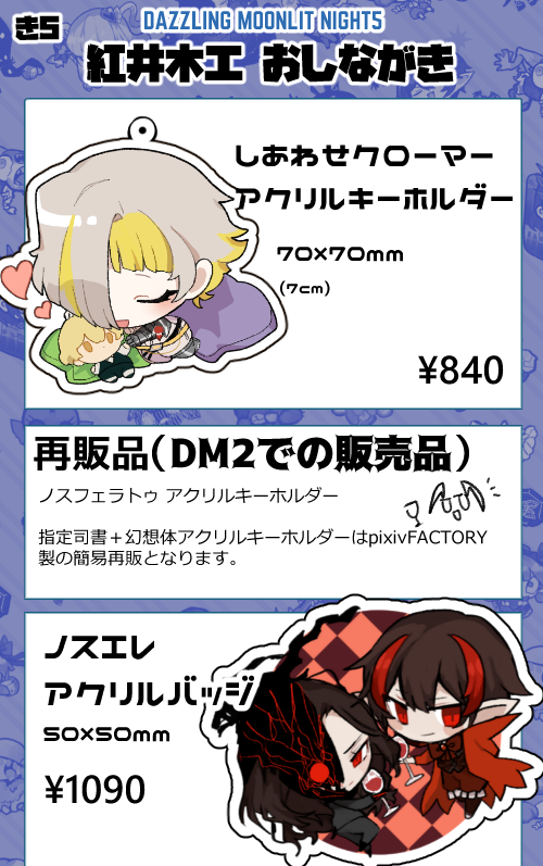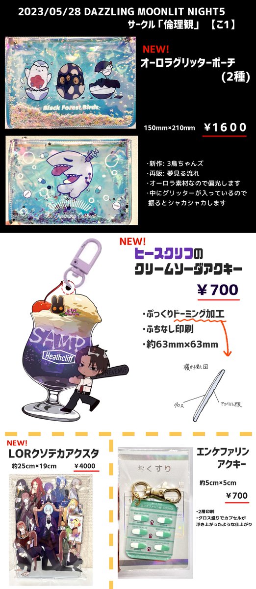 5/28 DAZZLING MOONLIT NIGHT5の スペース「こ13」にてまたまた参戦致します! 新グッズ新ネップリだけでなく! 今まで過去出したグッズが今までよりお安くなっております! (初期頃のグッズに関しては今回でおそらく最後になります) #ダズムン5お品書き twitter.com/HoagieCoco/sta…