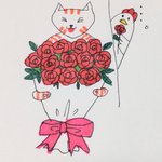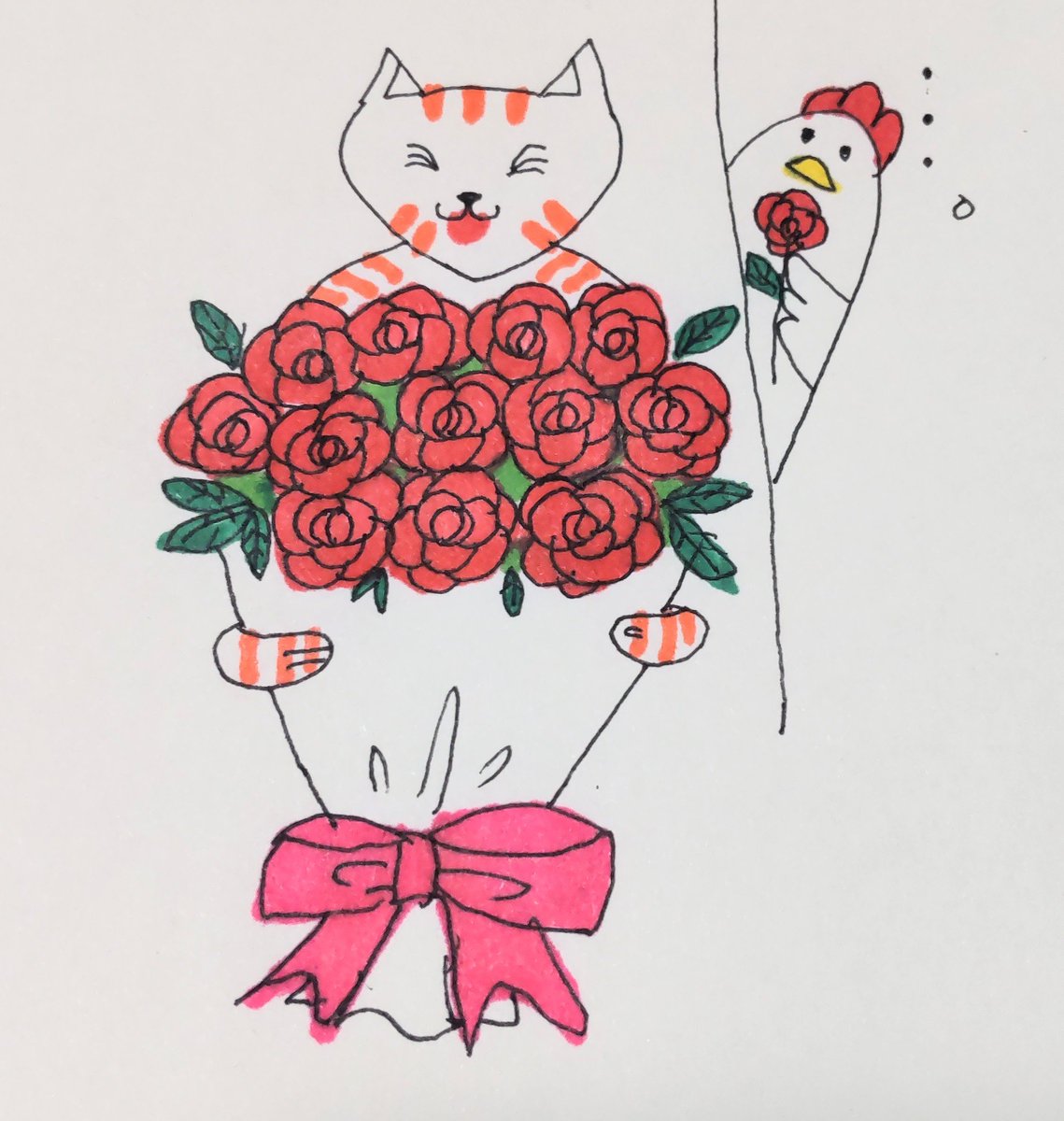 おはようございます!! (#ダズンローズ・デー ) ことらから、12本のバラをお届け!! ニワちゃんからも、、!!💕 今日も素敵な日曜日を〜😆 #イラスト好きさんと繋がりたい #絵描きさんと繋がりたい #みんなで楽しむTwitter展覧会 #イラスト