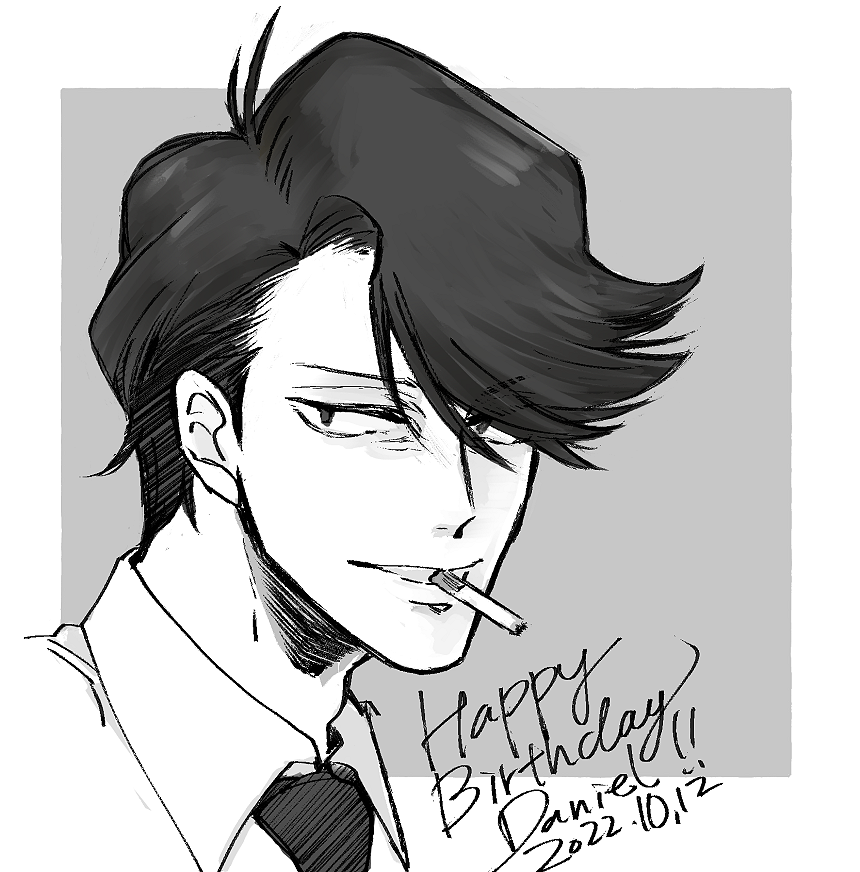 今の原作のライブラとの距離感からいうと今年はクラウスさんがパーティー開いてくれるのでは?というダニエル・ロウ警部補誕生日おめでとうらくがき #ダニエル・ロウ生誕祭2018 #2018ロウ警部補生誕祭