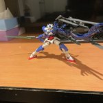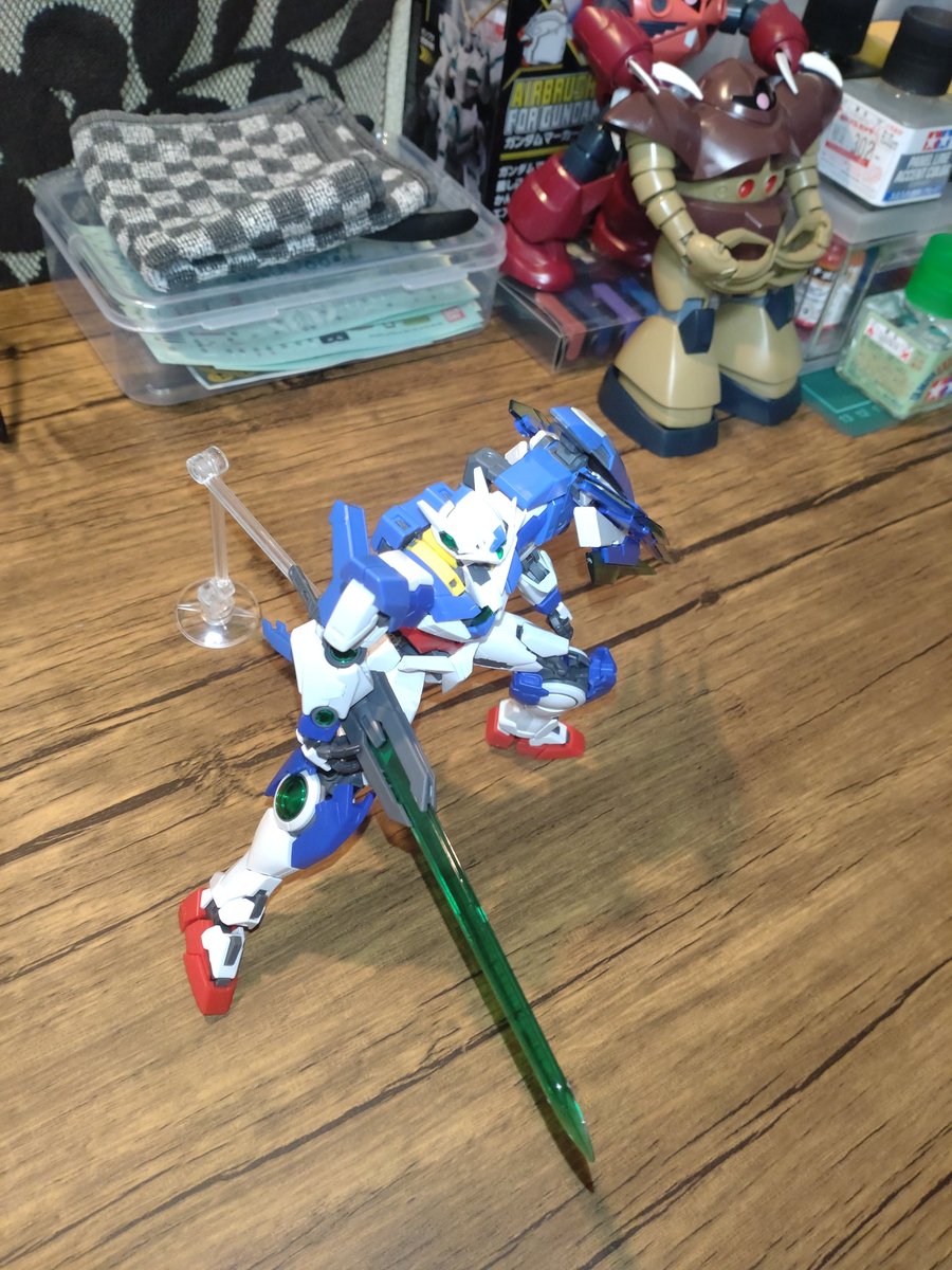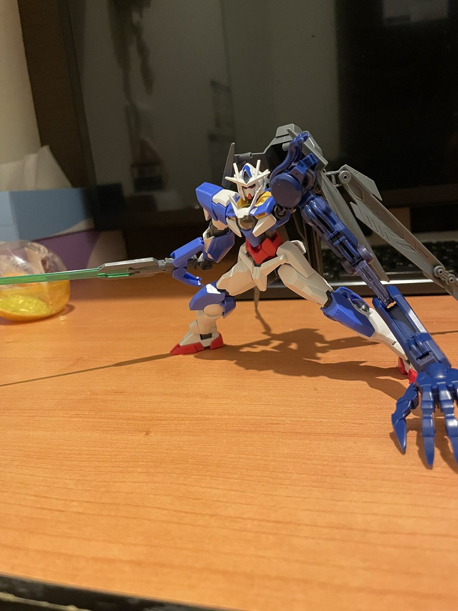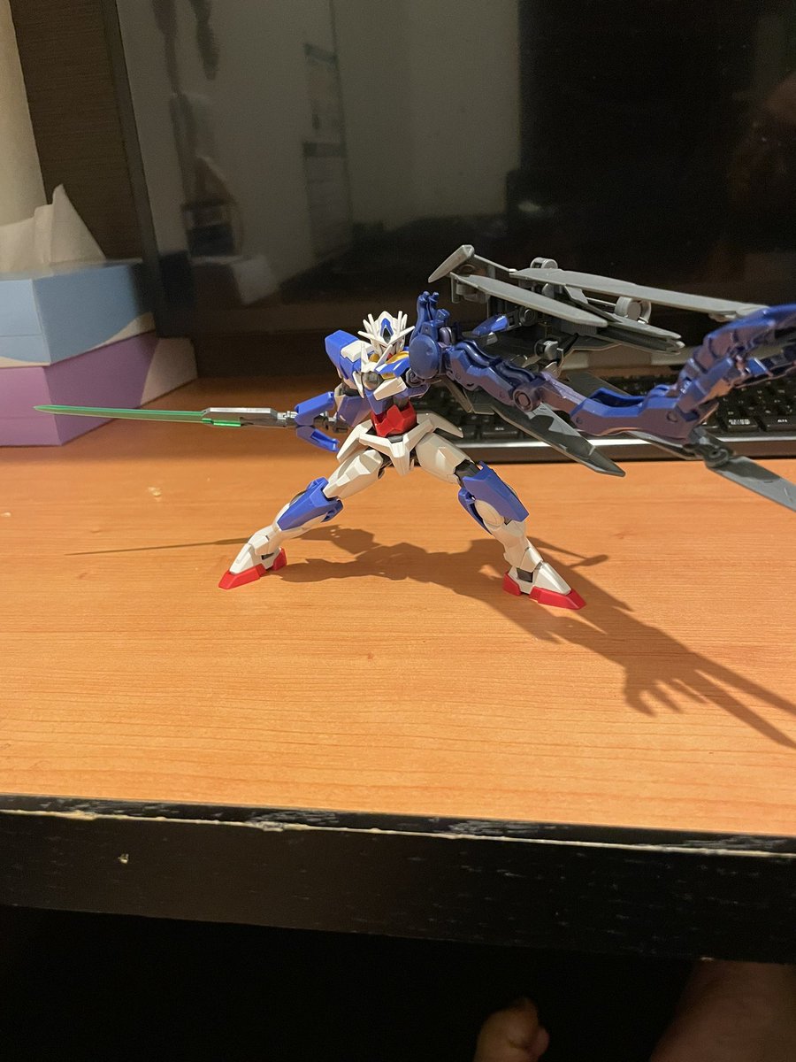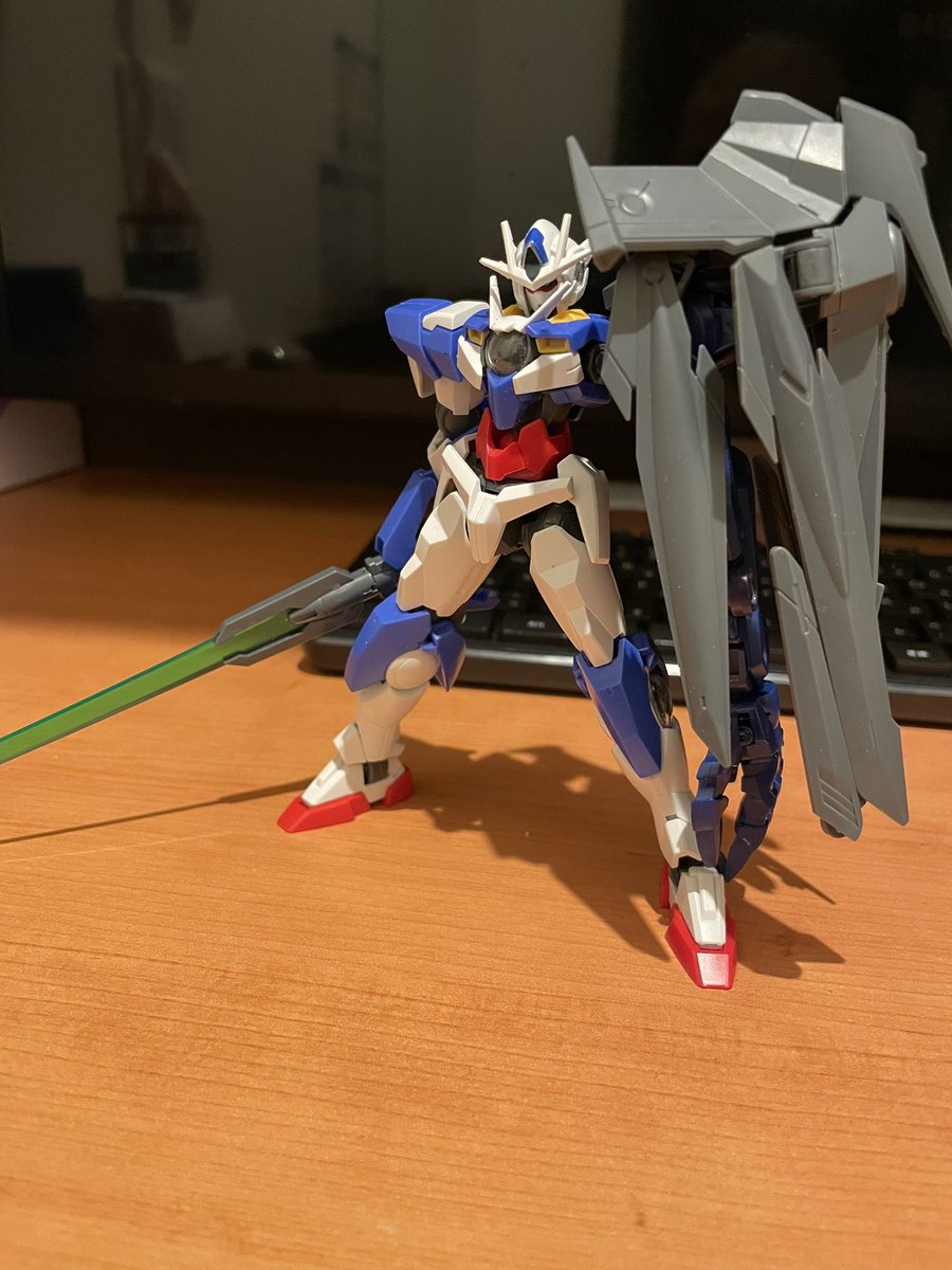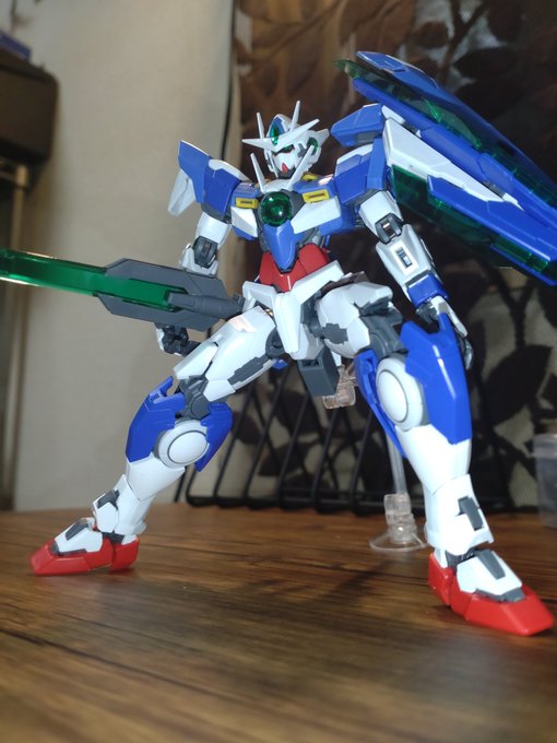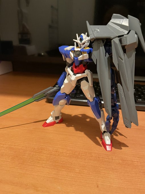 ダブルオークアンタ完成!✨ バスターモード重いけど思ったよりも保持出来てて、手首強いなと思わされた! 3枚目はトランザム後の 刹那「このまま表面を切り開く!」 のシーンを再現したつもり #ガンプラ #ガンダムOO #ダブルオークアンタ #ガンプラの画像貼るとRTされると聞いて