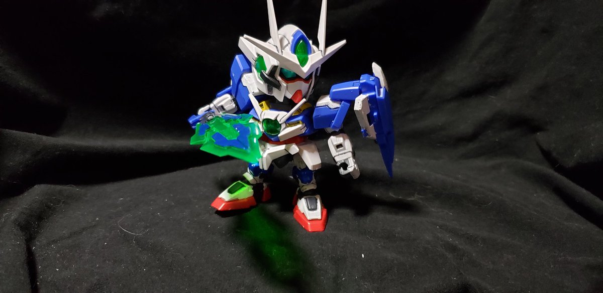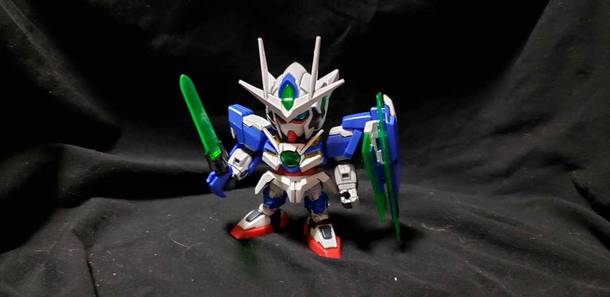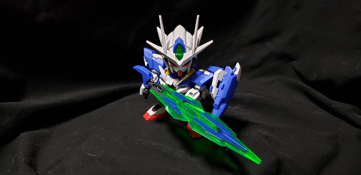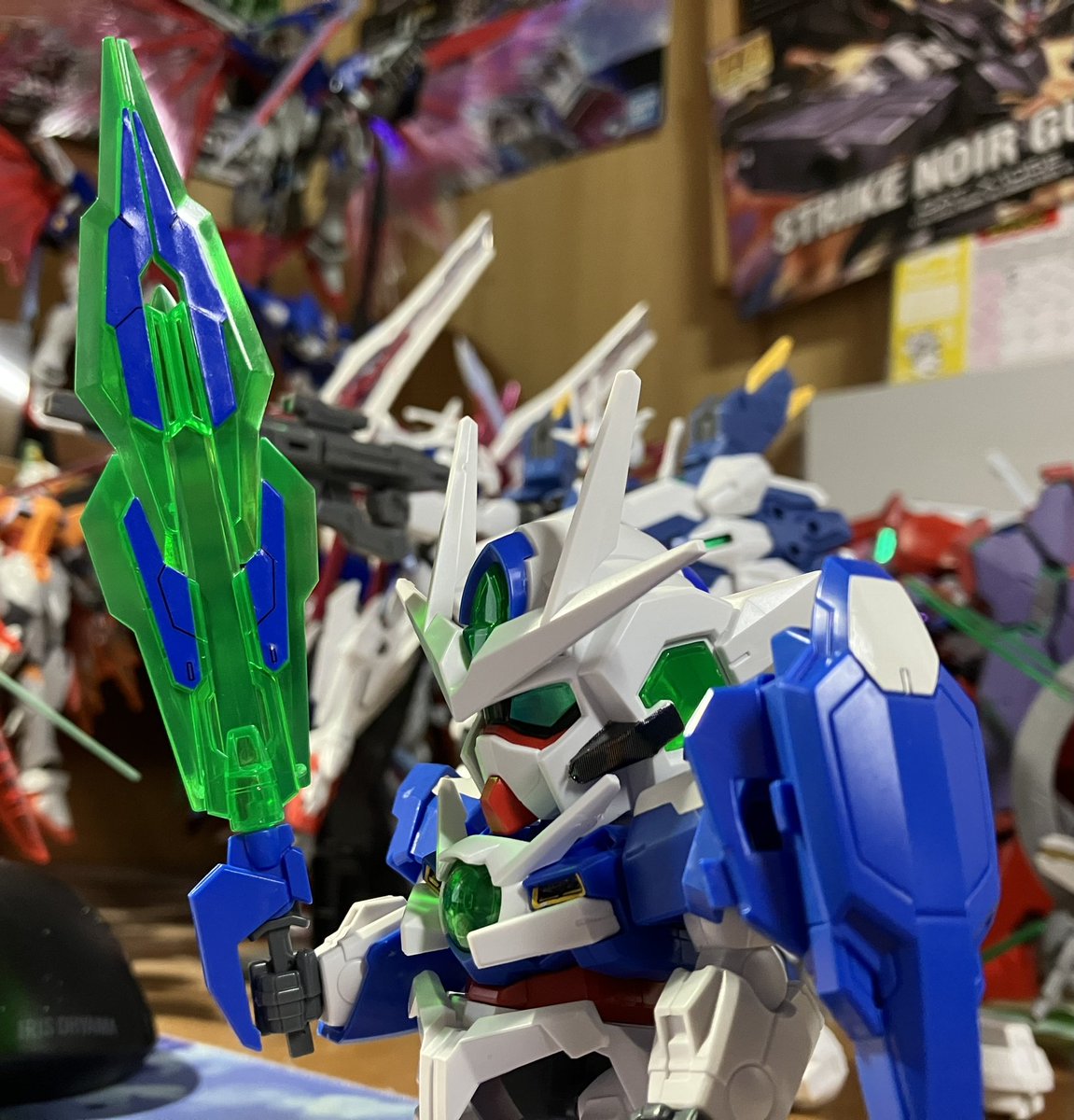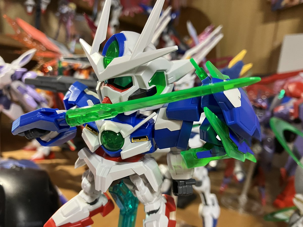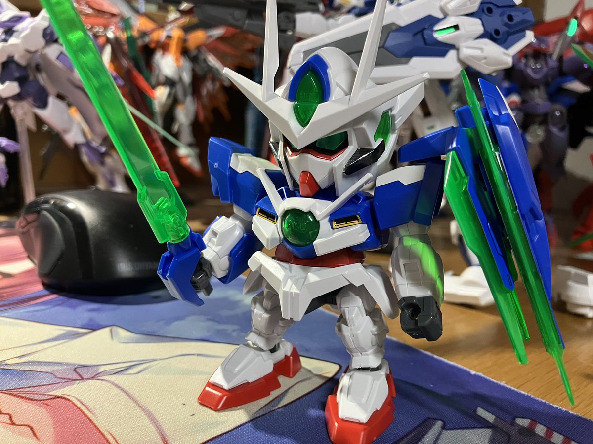 BB戦士 ダブルオークアンタ 塗装 省略されていた箇所を塗装 専用のディスプレイスタンドも付属する為広い可動を活かして劇中のポージングも再現可能な他武器の換装も出来る #ガンプラ #ガンプラは自由だ #ガンプラの画像貼るとRTされると聞いて #BB戦士 #ダブルオークアンタ