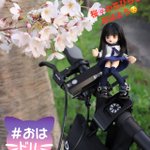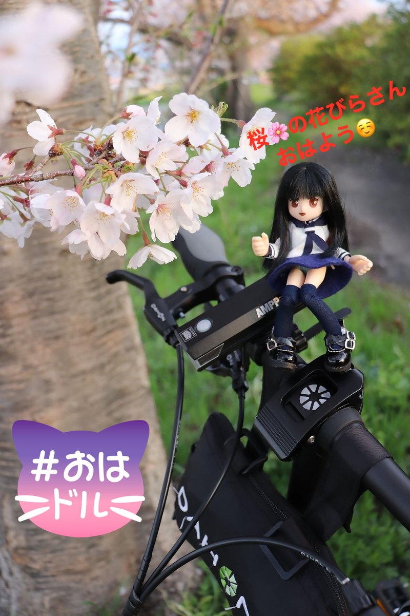 おはようございます。 ミニベロ(ダホンk3)に乗ってミニつくしと一緒に近所の河原でお花見♪ 楽しませてくれた桜も段々と葉桜に変わり始めてきていますね… #おはドル #今日もドールとお出かけ #ダホンk3
