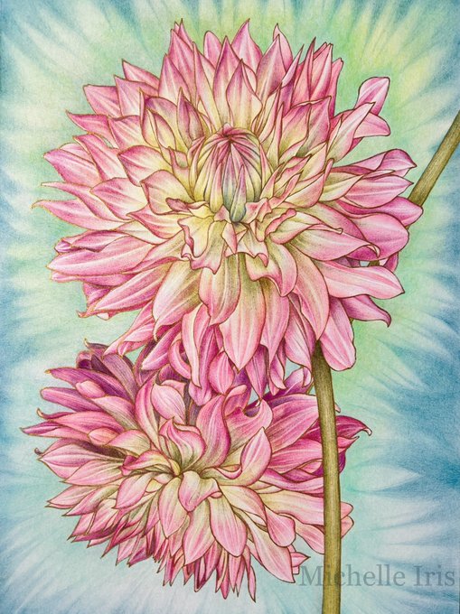 色鉛筆で描いた「ダリア」✨ こちらもぼんぼん先生の色鉛筆画教室のお題です🧑🏻🏫 #色鉛筆画 #色鉛筆 #ダリア #dahlia #colorpencil #colorpencildrawing