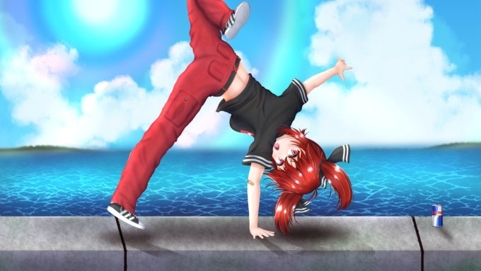防波堤でもバランスがいいツインテールの女の子✨ #オリキャラ #オリジナル #イラスト #illust #ダンスイラスト #芸術同盟 #イラスト好きな人と繋がりたい #絵描きさんと繋がりたい #初夏の創作クラスタフォロー祭り
