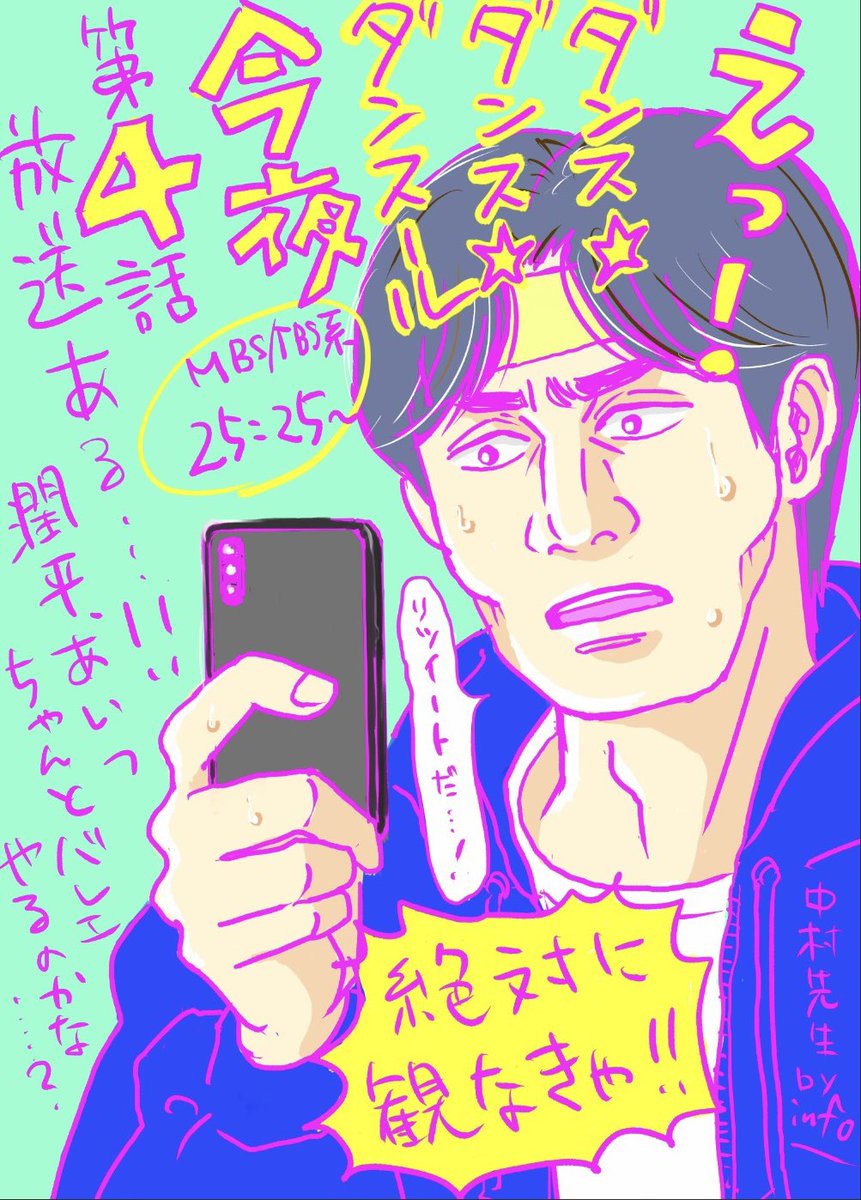 勝手にカウントダウン!ラスト! 中村先生😄(by中の人) お待たせしましたーーー‼️😆 本日ついに❗️ MBS/TBS系全国28局ネット 『スーパーアニメイズム』枠他にて 深夜25時25分〜放送開始です‼️ コミックス電子版1〜4巻 無料解放中‼️ shogakukan-comic.jp/book-series?cd… #ダンスール #ダンスダンスダンスール