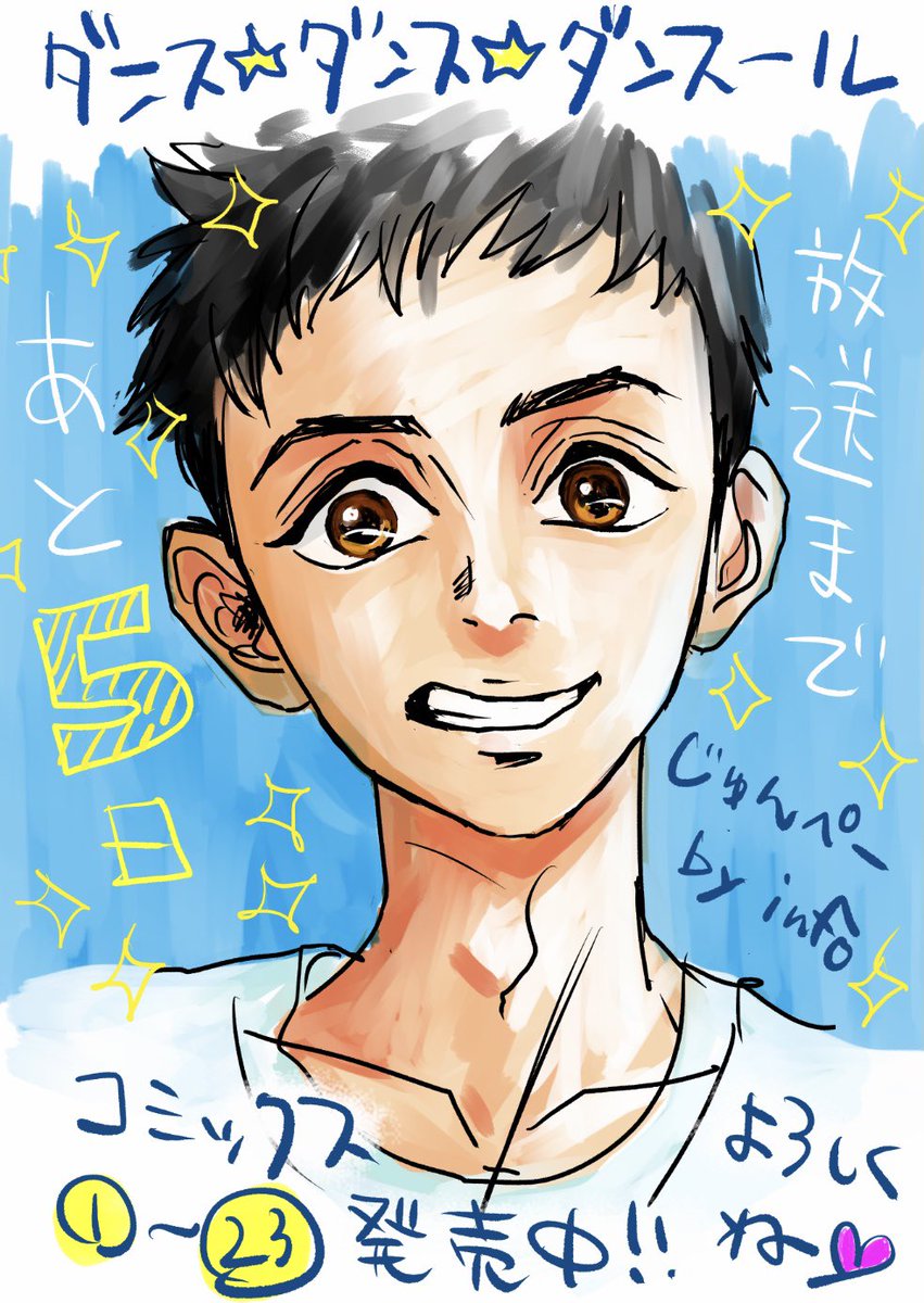 カウントダウン絵描く余裕ないジョージ朝倉に代わりまして、僭越ながら代筆してカウントダウンすることにしました!(本人画じゃなくてすみません…!)🙇♀️ TVアニメ放送まであと5日! MBS/TBS系全国28局ネット 『スーパーアニメイズム』枠他にて 4/8放送予定! #ダンスール #ダンスダンスダンスール