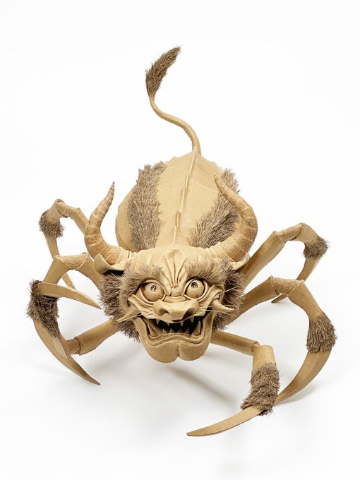 ダンボールの板材を切って、折って、捏ねて、貼って造形しております シンプルな形状を切り出し『捏ねる』ことで、曲面やディテールを作り込み、継ぎ目のない皮膚感を表現しています #あなたがまだ見たことがない世界かもしれない作品展 #ダンボールアート #ダンボール工作