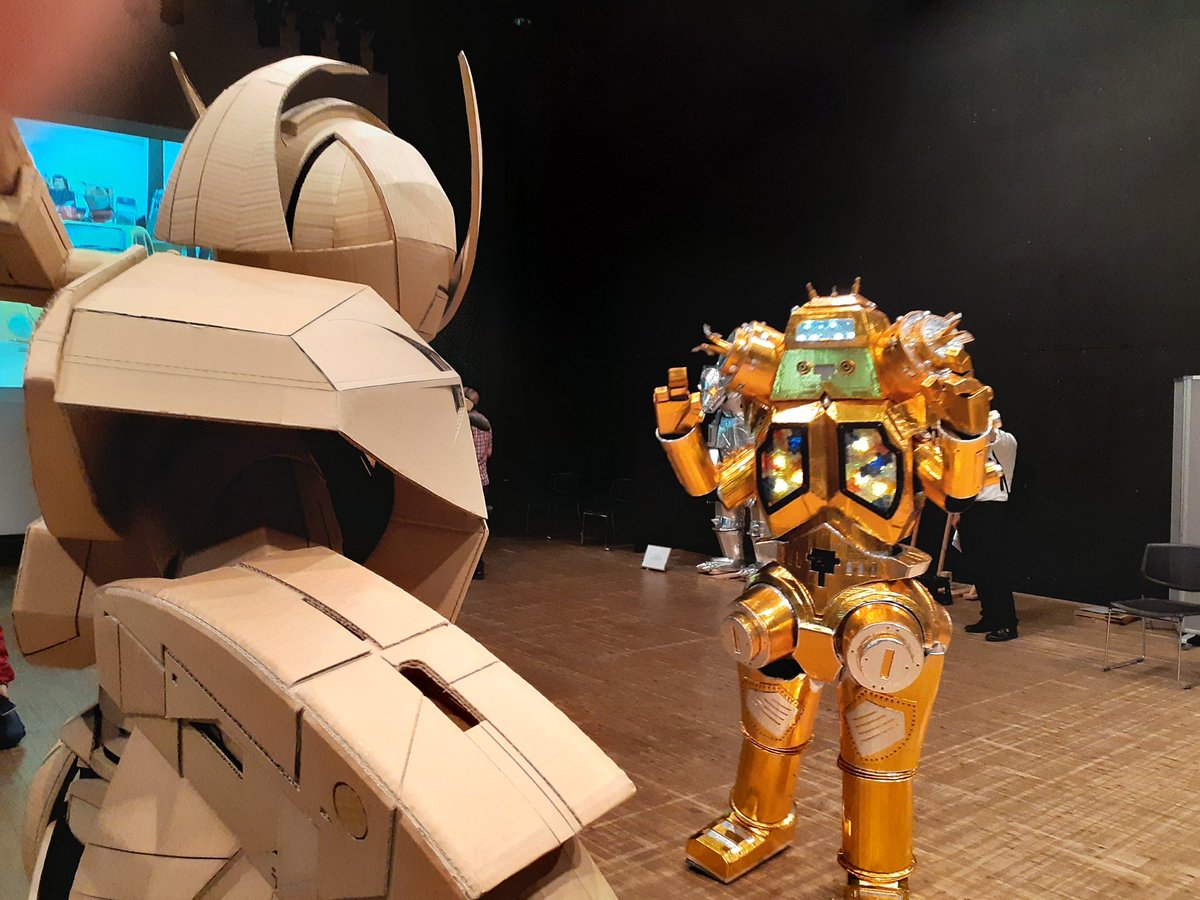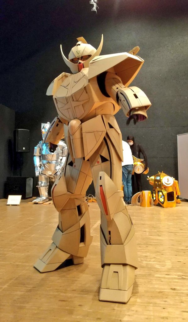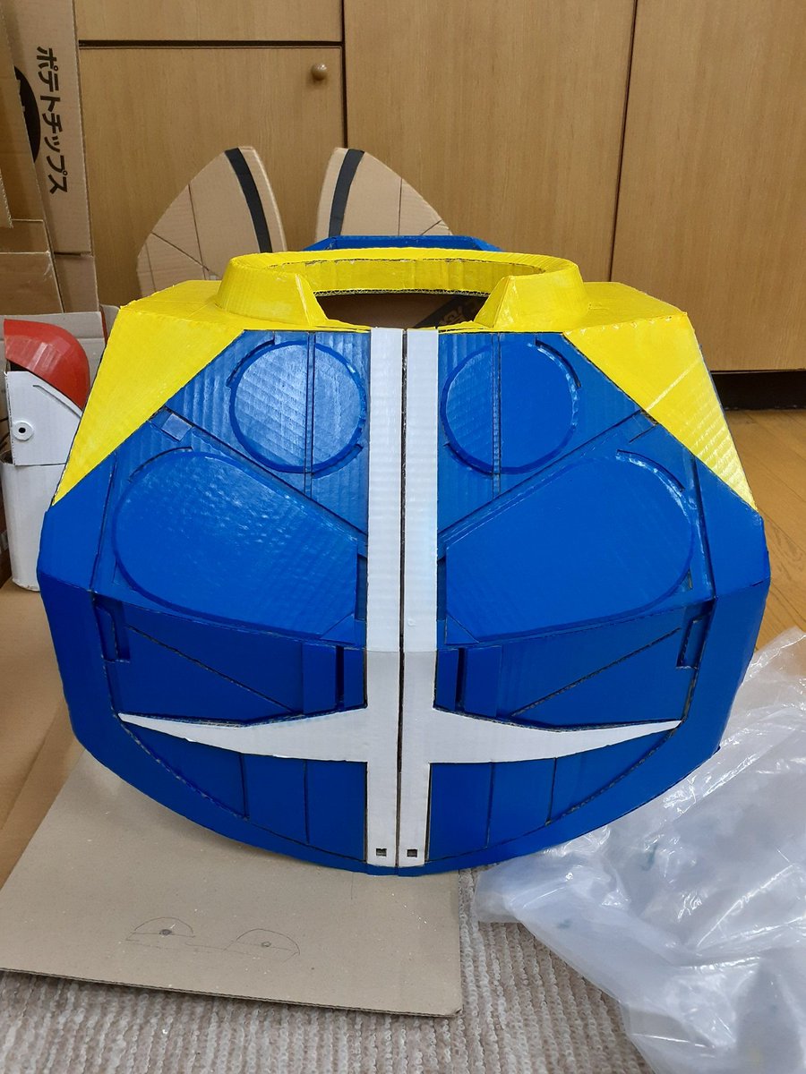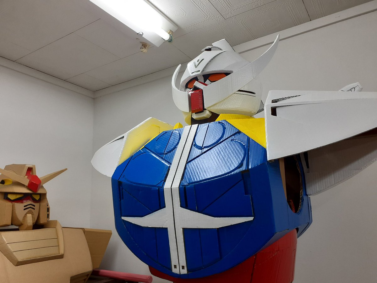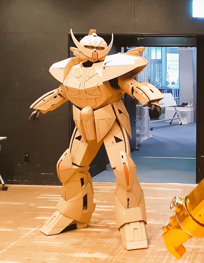 #ダンボールターンエー PCで設計してカットも機械を使用してると思われてる方がいるようでしたが、 全部手作業なんです😃 あと、肩のラインが胸とずれてると言ってる人もいましたが、肩は動くので常にそろってる訳ではないのです。