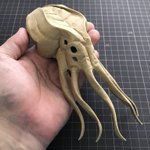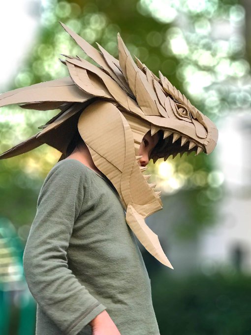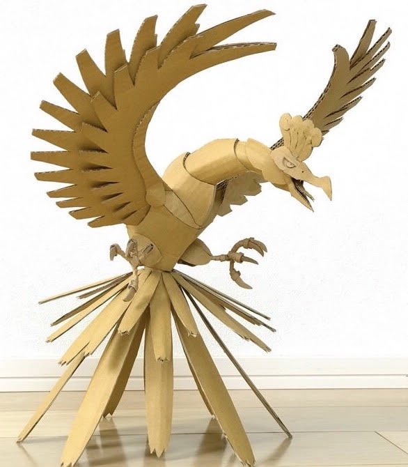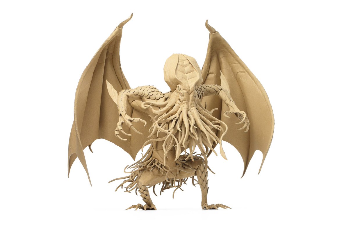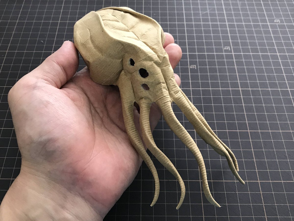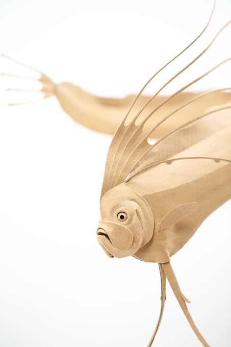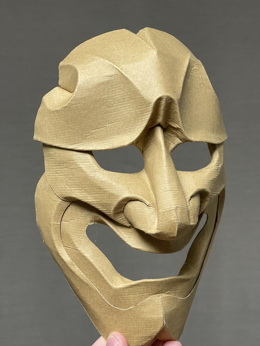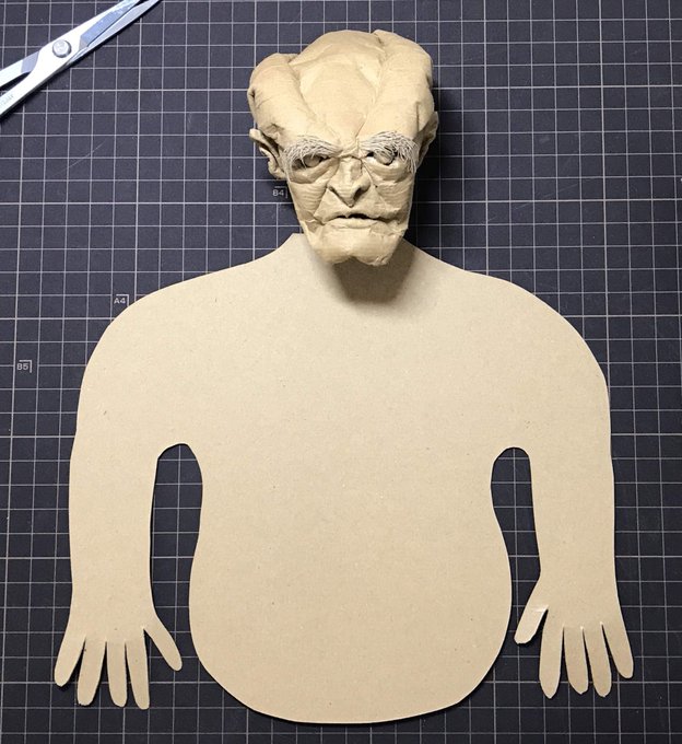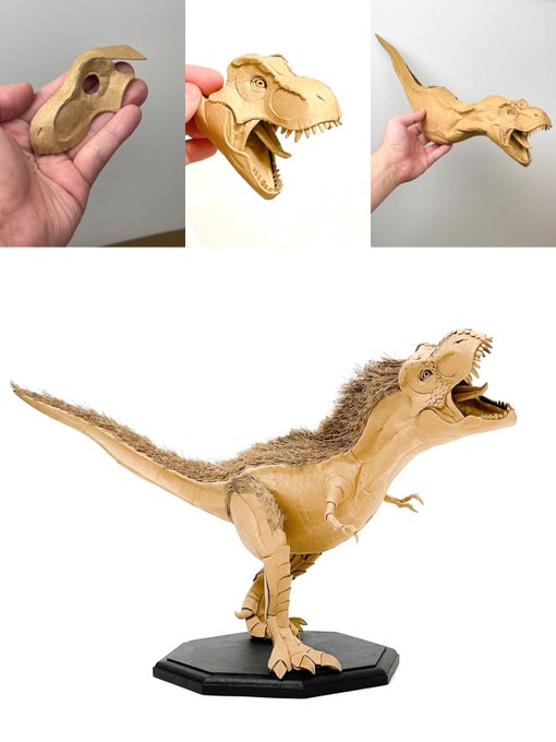 ダンボールの板材を切って、折って、捏ねて、貼って造形しております シンプルな形状を切り出し『捏ねる』ことで、曲面やディテールを作り込み、継ぎ目のない皮膚感を表現しています #あなたがまだ見たことがない世界かもしれない作品展 #ダンボールアート #ダンボール工作