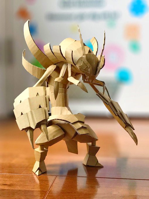 #上手いとか下手とかそういうのは関係なく自分が作った大好きな子を4人選抜見た人もやる ダンボールの板材から、ゴリゴリの曲面を捏ねるのが好きです! #ダンボールアート #ダンボール工作