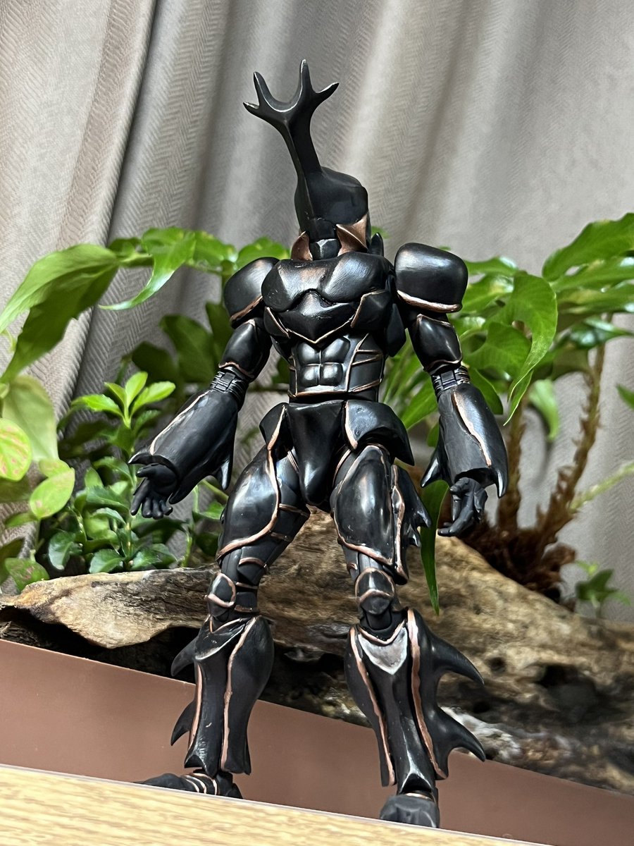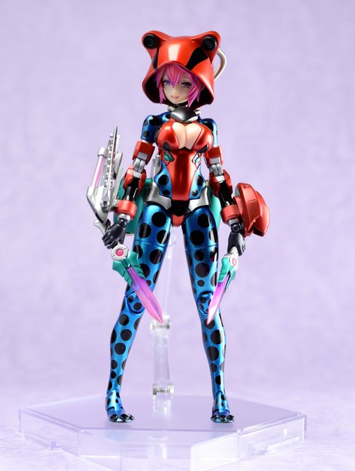 #メガミデバイス 完成しました、ヤドクカエルをモチーフにしたカエル怪人、VENOMケロぴょんです。 なまずさん@BoiledNamazu の企画 #ダーウィンフレンズ 用に製作しました。 スサノヲをベースに自作部品、流用部品を加えています。毒々しい塗装を頑張りました。