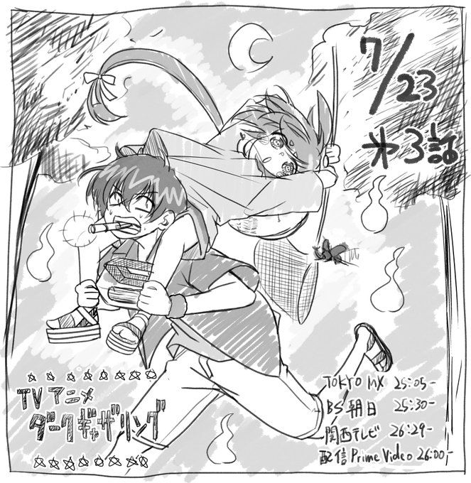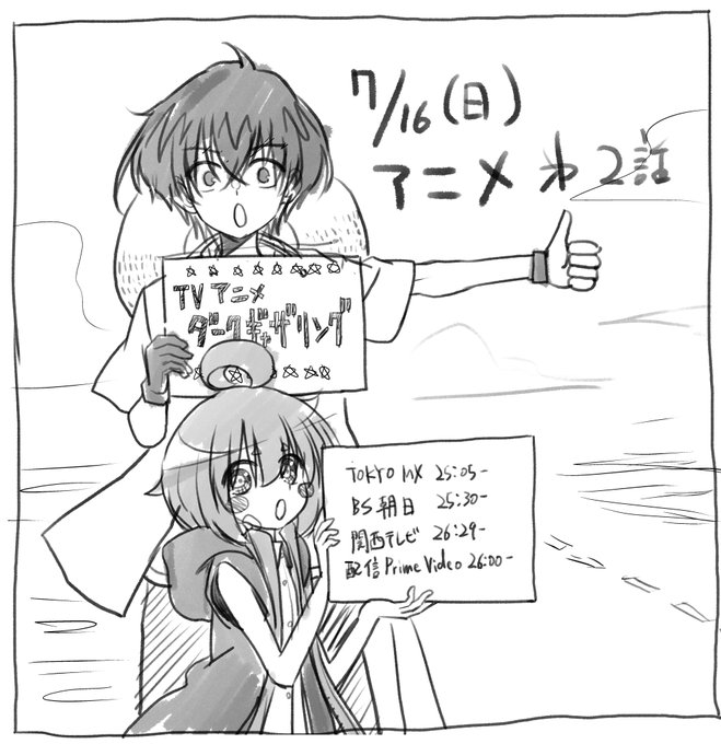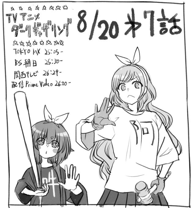 アニメのこの頃のお話を原作的にふりかえると…という場合ではなくなってきた今月の原稿修羅場なタイミング…! しかしまだ持ちこたえられる…! (イラストは寳月家の門番二人) 今夜のアニメ7話もよろしくお願いいたします! #ダークギャザリング