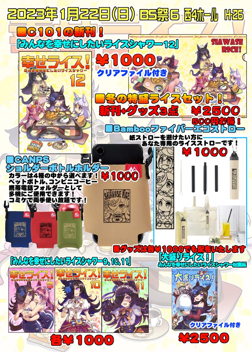 1月22日(日) BS祭6 H-26 「ぷりん堂」お品書き #ウマ娘プリティーダービー #ウマ娘 #ライスシャワー(ウマ娘) #幸せライス #ダービーガールズ pixiv.net/artworks/10464…