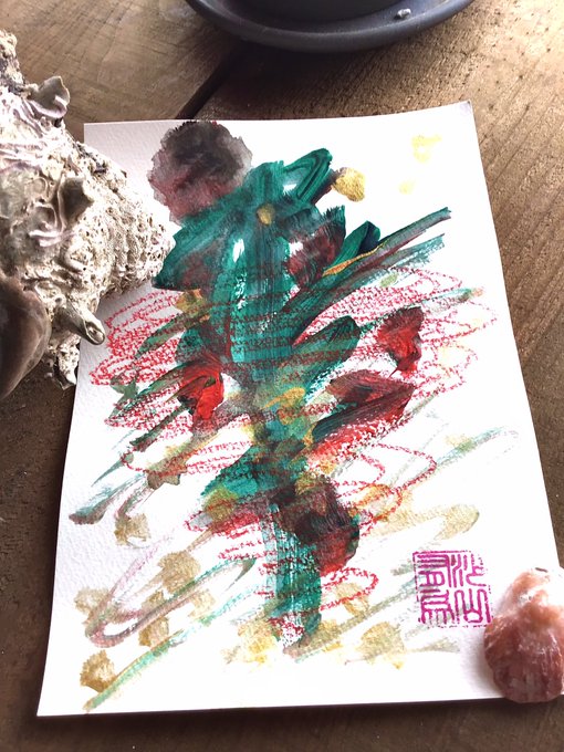 ん〜、シンプルすぎるかな? でも、もうこれ以上何かを描き加えたい衝動に駆られていないから、これで完成かな? 一晩寝かせて、明日の朝見た感覚で、決めます☆ #花おっさん #絵描きさんと繋がりたい #ダーマトグラフ #ArtistOnTwitter #artwork