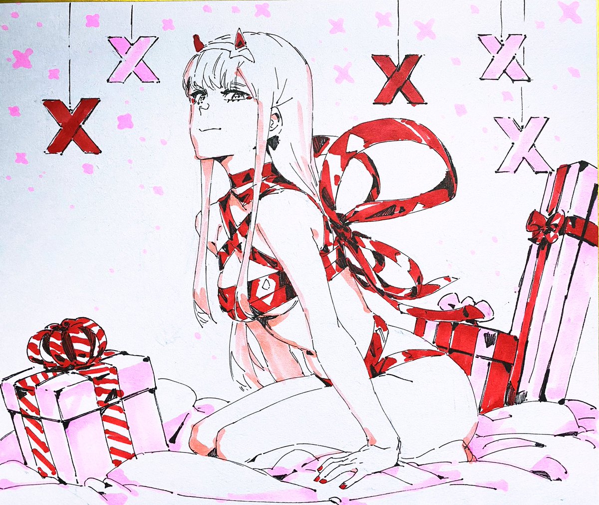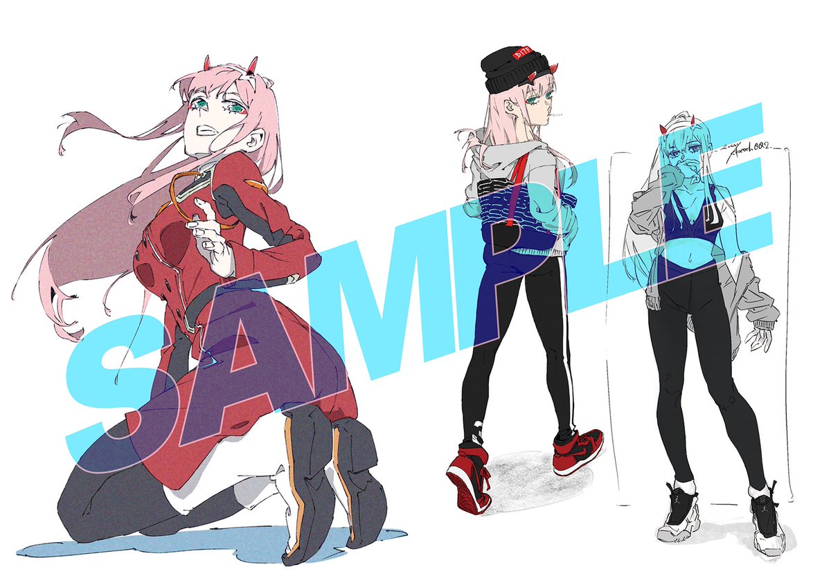 新刊 002x2 のサンプルです。 46ページの中に2年間描き続けたゼロツーのイラスト、スケッチを詰め込みました。 もし、ご興味があったら手に取っていただけると嬉しいです。 #ダーリンインザフランキス #ゼロツー #C99