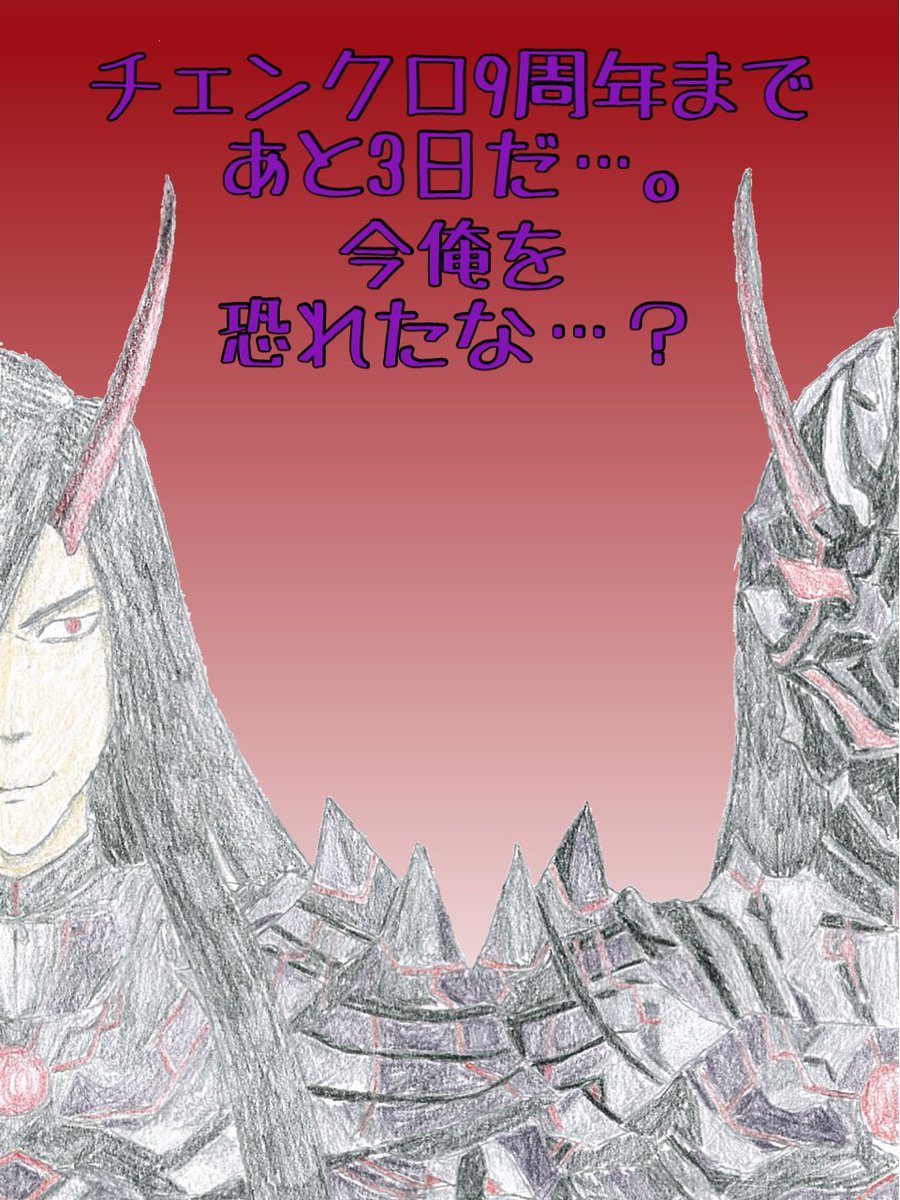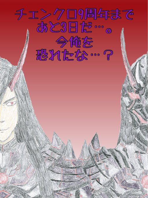 チェンクロ9周年まであと2日!!ウオオオオアアアア\( 'ω')/アアアアアッッッッ!!!!! 新世界楽しみで楽しみで… いぬきちさん毎年とっても楽しい企画をありがとうございます! 盛り上がってけー! #チェンクロ9周年カウントダウン/リレー企画 #チェンクロ9周年おめでとう #チェンクロアート