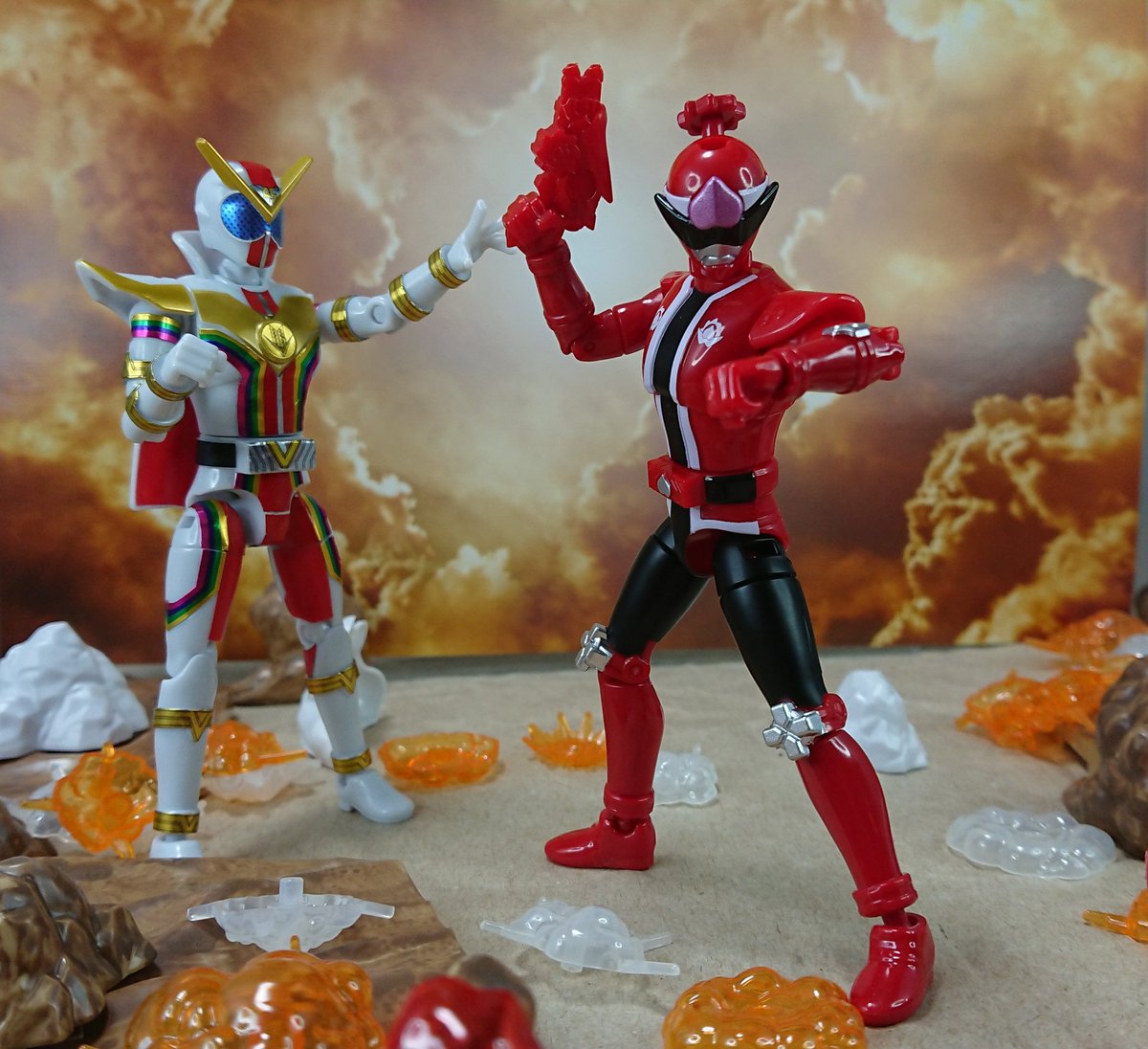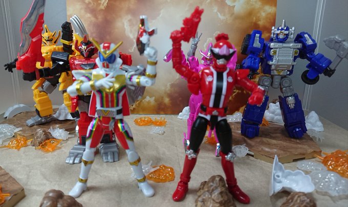 #夜のフィギュア撮影会 3/9 お題『ありがとう』過去撮影 #勇動 #チェンジヒーローズ #ゼンカイジャー #ドンブラザーズ ゼンカイ「前に助けてくれてありがとう」 ドンモモ「おかげでお前達と縁が出来た。」