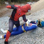 併せ NO17-2 一般人?①-2 次に背後から #チェンジペガサス を攻撃。 両腕を抑え抵抗出来ないようにし、その後首を締めてペガサスを苦しめます。 #電撃戦隊チェンジマン #コスプレイヤーさんと繫がりたい #コスプレ