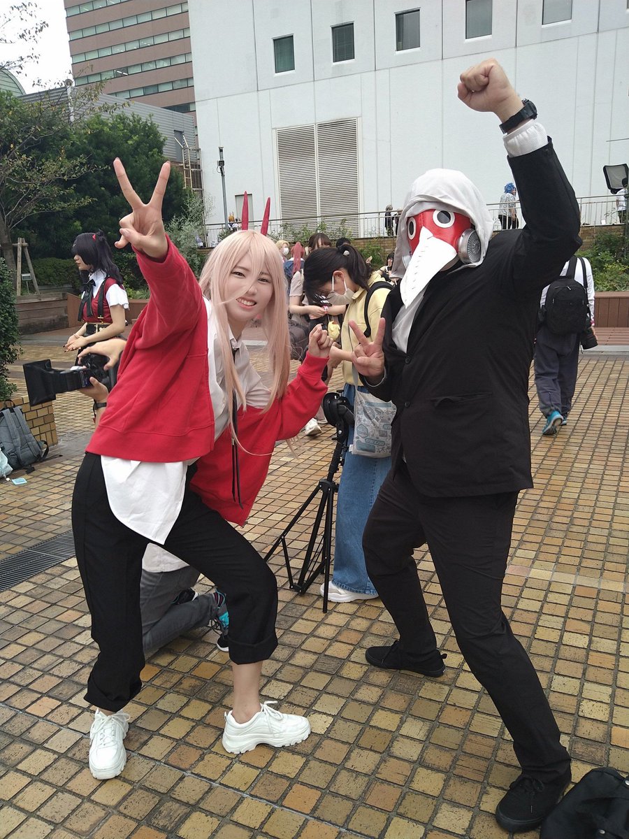 チェンソーマン!! 「お前たち100点だ」 デンジくん(@zizyou_matsushi ) 岸辺さん(@Corporal_Kaspen) 📷豆助さん(@omamesukedesu) パワー≫わい 偶然できたこの併せすごくない? 最高すぎる! 漫画読んでる勢は大興奮だよ!! #かみこす #チェンソーマンコス