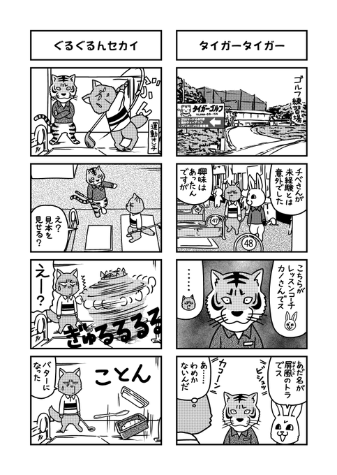 こんにちは。チベユウスケ係長再掲41回目です。 そういえば練習場何年行ってないでしょうか。 #タイガータイガー #ぐるぐるんセカイ #屏風の虎 #チベユウスケ係長の憂鬱 #漫画が読めるハッシュタグ #動物マンガ