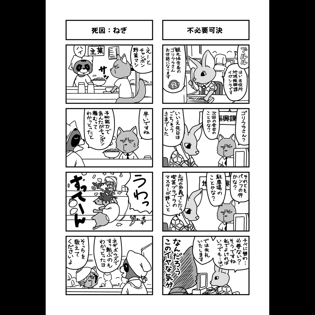 こんにちは。チベユウスケ係長再掲39回目です。 キャメ兄もモデルがいます。 #水産加工業 #前例にないのでダメです #倫理規定 #チベユウスケ係長の憂鬱 #漫画が読めるハッシュタグ #動物マンガ