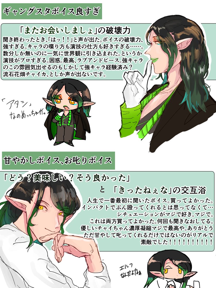 親しいおネェさんかと思いきや突如上位存在になるのウヒャ!と喜びました。甘やかし→お叱りでゆるっと話が繋がってるのも良い〜 shop.nijisanji.jp/s/niji/item/de… #お花畑青空大写生大会 #チャイカボイスダ
