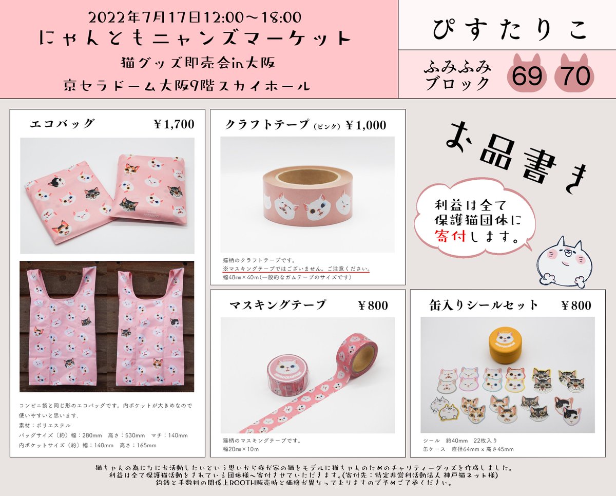 直近ですみません! 7月17日京セラドーム大阪にて開催されるにゃんともニャンズマーケット8に参加いたします。 以前作ったこの子たちを連れて行きます~!利益は全て保護猫団体様に寄付いたします。 どうぞよろしくお願いいたします💕😸 #ニャンズマーケット #チャリティ