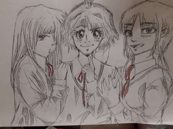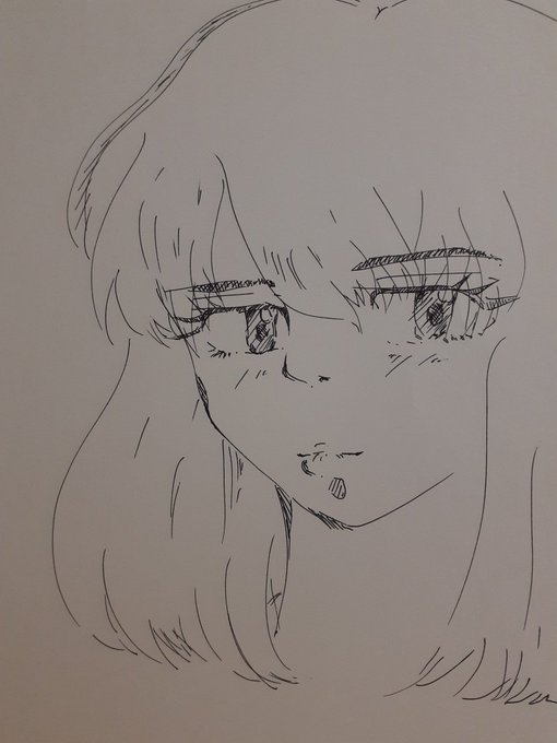 #落書きギルド #イラスト練習中 #落書き #アナログイラスト #オリジナルキャラクター #女子高生 #アトリエの系譜 #チャンネルエデクシー #絵描きさんと繋がりたい 線画を整えて影をつけてみました。雰囲気がグッと変わりました。