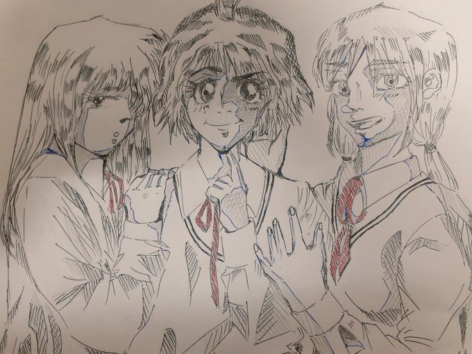 #落書き #オリジナルキャラクター #アナログイラスト #アトリエの系譜 #チャンネルエデクシー #イラスト練習中 #落書きギルド #女子高生 力んでます。もっとサラサラ描けるようになりたいなあー