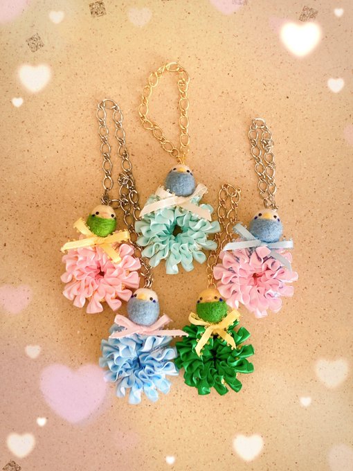 #セキセイフェスティバル ✨ ワレアリボンレイさんとのコラボ リボンチャーム。 初の遠征です。ドキドキ✨ 近鉄百貨店奈良店 3/23〜✨😊 お近くの皆様、よろしくお願いします。 #羊毛フェルト #ことりカフェ #セキセイインコ #rookの仲間たち #チャーム