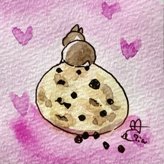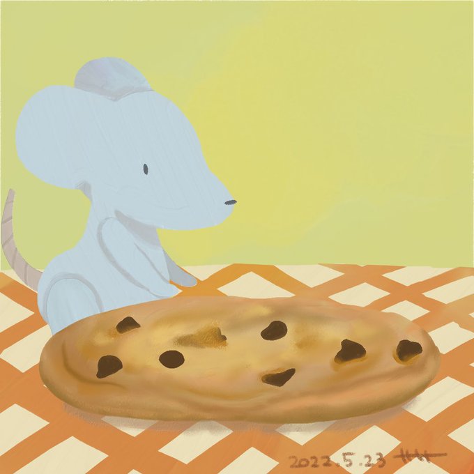 チョコチップクッキーの日なので、チョコチップクッキーとネズミくんを描きました!! チョコレートがゴロゴロしている大きなクッキーを食べると満足感が得られるので、スタバに行くと食べたくなります💦🍪 #イラスト #一日一絵 #チョコチップクッキーの日