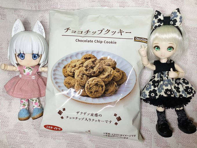 チョコチップクッキーを、なかよく半分こ🍪 いっしょに食べるともっとおいしいね🥟 #ゆるいイラスト #イラスト #illustration #illustrations #ギョザー #チョコチップクッキーの日