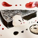 よく見たらケーキの影が無かったので再度載せ直しwww(〃艸〃) スマホの画像編集で色調整してるので、先に載せたのと少し違ってます。 こっちのほうがビターかな? #イラスト #バレンタイン #チョコレートケーキ twitter.com/ZSuW3VTUzd8bTb…
