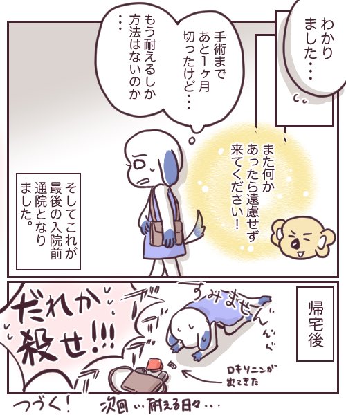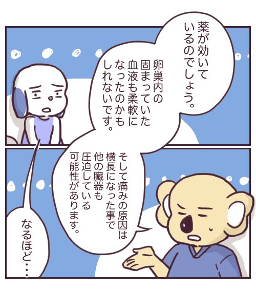 チョコ嚢シリーズ🍫46 術後、その人に応じて入院期間は長くなるようですが 私は多分最短で退院する事が出来ました! (結局昨日投稿するの忘れたww) #漫画が読めるハッシュタグ #チョコレート嚢胞