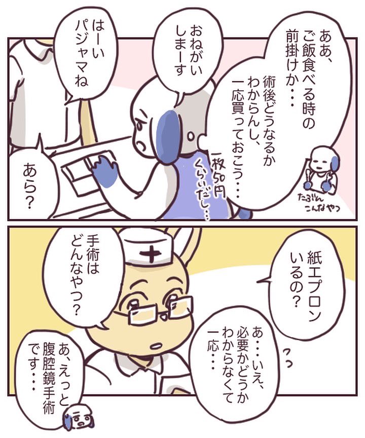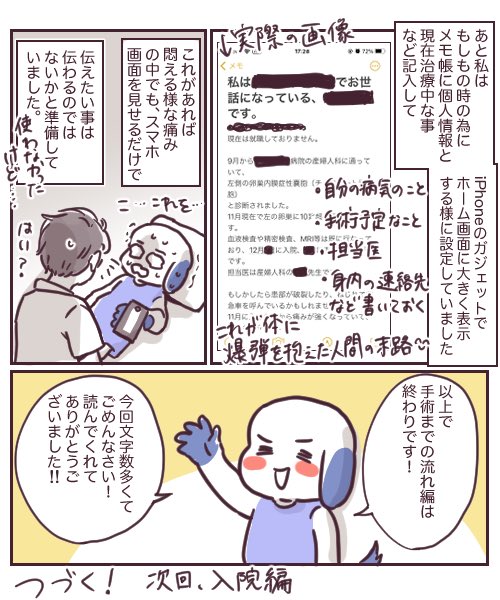 チョコ嚢シリーズ🍫28 看護師さんからしたら見慣れた光景なんでしょうね・・・ でも、この体制・・・笑 この後ゴリさんにめっちゃLINEしました笑 あと保湿剤は沢山持っていこう! #漫画が読めるハッシュタグ #チョコレート嚢胞